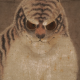 まるでアニメのキャラクターのようにくるりと丸く描かれた目や口に、思わず目を奪われます。土方稲嶺は江戸中期の南蘋派の絵師で、因幡画壇の祖として多くの門人を育てたことでも知られています。当時の人々はこうした大家の作品を見て、まだ見ぬ虎という生き物を想像していたかと思うと感慨深いものがあります。
