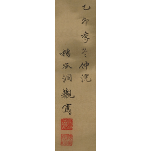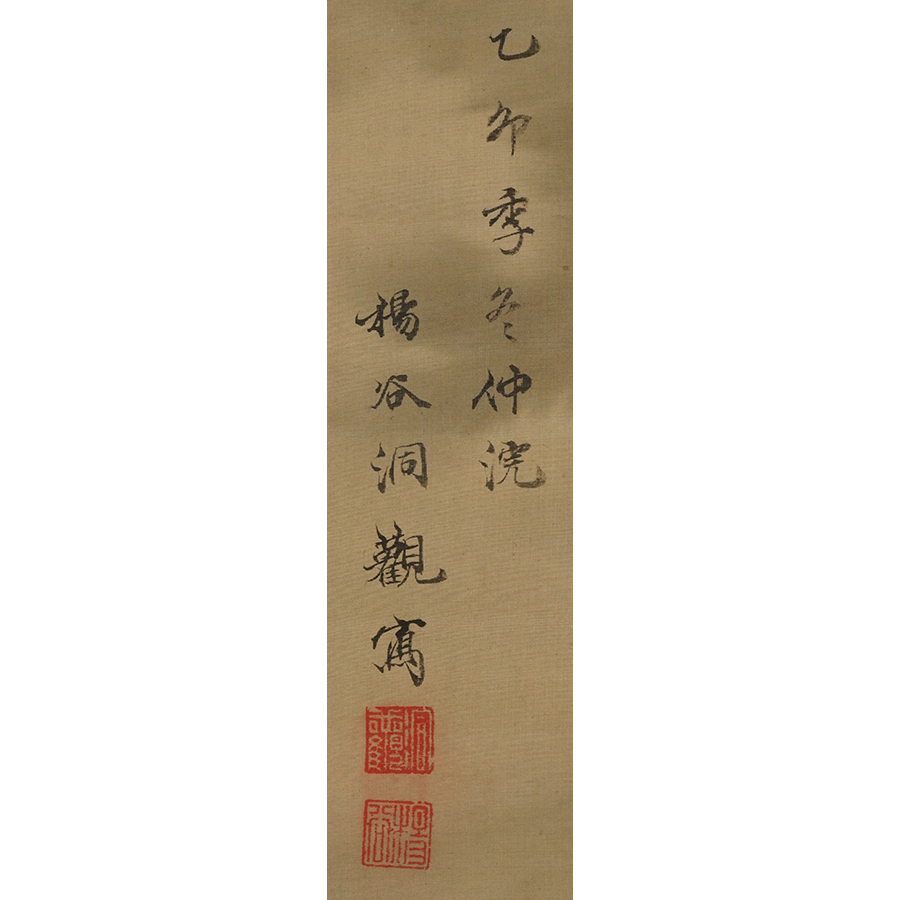 江戸中期の長崎派の絵師。長崎生。名は貞雄、通称は宗馬、別号に画禅窟など。幼い頃から絵に優れ、円山応挙はその画才を見て驚嘆し、弟子入りを請う楊谷を友人として迎えたという。虎絵においては毛を細い線で丹念に表し、「楊谷の毛描き」と呼ばれるほどの腕前であった。享和元年(1801)歿、42歳。