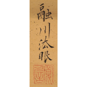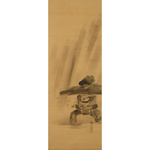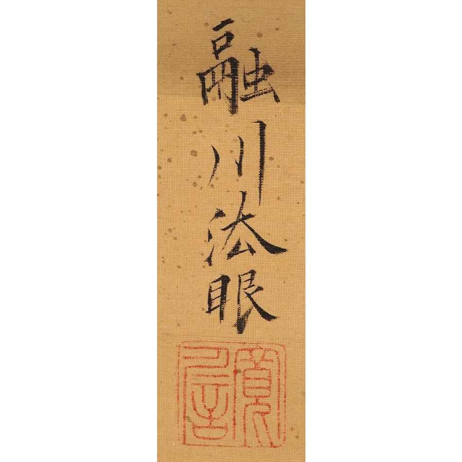 明治期の京都画壇で、森寛斎・幸野楳嶺とともに三巨頭の一人として活躍した竹堂。虎図を得意としましたが、こちらの作品では鹿の生き生きとした愛らしさも存分に描き出しています。この作品は京都府立総合資料館で開催された『岸竹堂とその芸術』展に出陳されました。