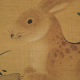 中橋狩野家の祖となった狩野安信による兎図。薄墨でさらりと描かれた三羽が、まるで団子のように連なっている様子が愛らしい一幅です。